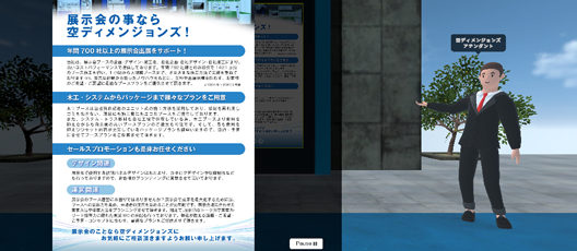 仮想空間のショールームでアテンダントが空ディメンジョンズのサービス内容を紹介いたします。